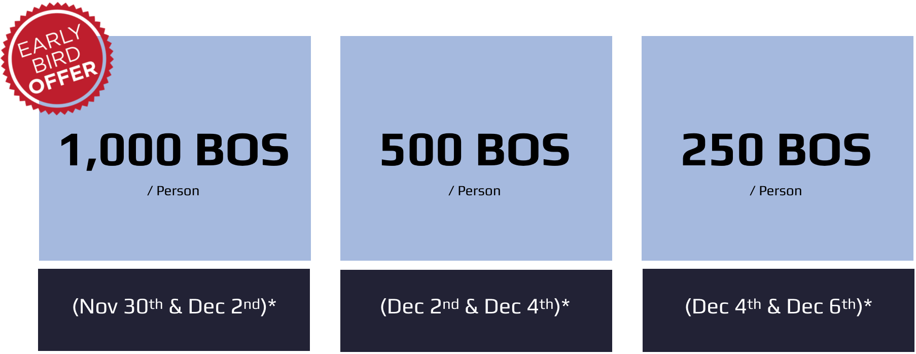 2. 500 BOS is given to members who vote on anytime between Dec 2nd, 2018 (13:00:00 UTC +09:00) to Dec 4th, 2018 (12:59:59 UTC +09:00).
