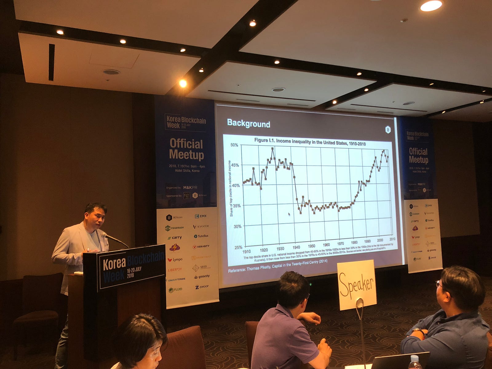 Yezune Choi, CEO, presented at a large meetup while the team attended the Blockchain Week conference in Seoul.