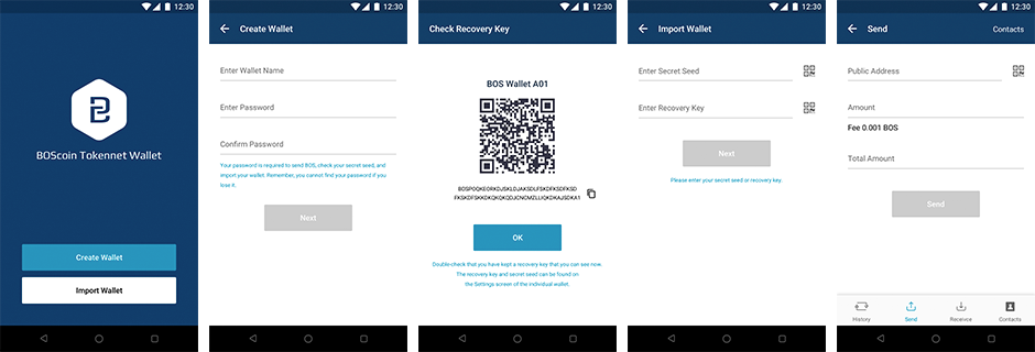 We introduce new mobile wallet, “Tokennet App Wallet” for BOSCoin Tokennet. We created the “Tokennet App Wallet” because of the various feedback regarding our web wallet, both internal and externally. After reviewing all the requests, we discovered a major issue related to the current web wallet (https://wallet.boscoin.io) regarding the “Secret Seed”. We received a lot of feedback about people losing their “Secret Seed” and wanting to recover it; and also the user-unfriendliness of a member needing to enter the “Secret Seed” in order to view their transaction history. Therefore in creation of our new wallet, we targeted to improve on our “Secret Seed” management (from the web wallet) as well as some other functions described below. During the design, our team reviewed various concepts focusing on the security and user friendliness of the wallet; which after a number of discussions, we arrived to the solution of having a “Recovery Key” and Password to back-up “Secret Seed”, and incorporated it into our first prototype of the “Tokennet App Wallet”.